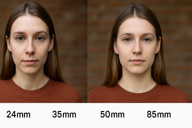 فاصله کانونی نقش کلیدی در نمایش چهره دارد. لنزهای واید فضای بیشتری نشان میدهند اما چهره را تغییر میدهند؛ لنزهای تله چهره را فشردهتر و طبیعیتر میکنند.